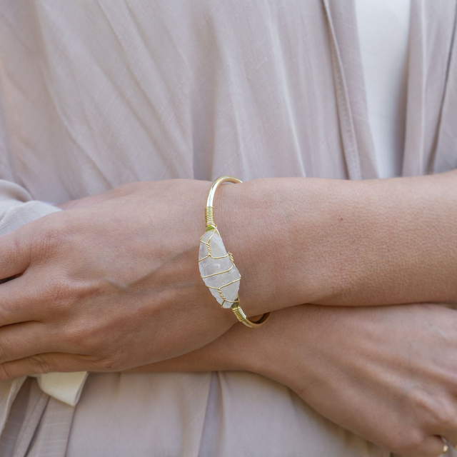 A hegyikristály a fény, a tisztaság és a harmonikus energiák köve, amely segít megtisztítani az elmét és megerősíteni a belső egyensúlyt. Kristálytiszta ragyogása a friss, tiszta hegyi levegőt idézi, és viselőjét támogatja abban, hogy világosan és magabiztosan haladjon saját útján. Ez a nyitott, állítható karperec letisztult formájával a természet átható tisztaságát hordozza magában.