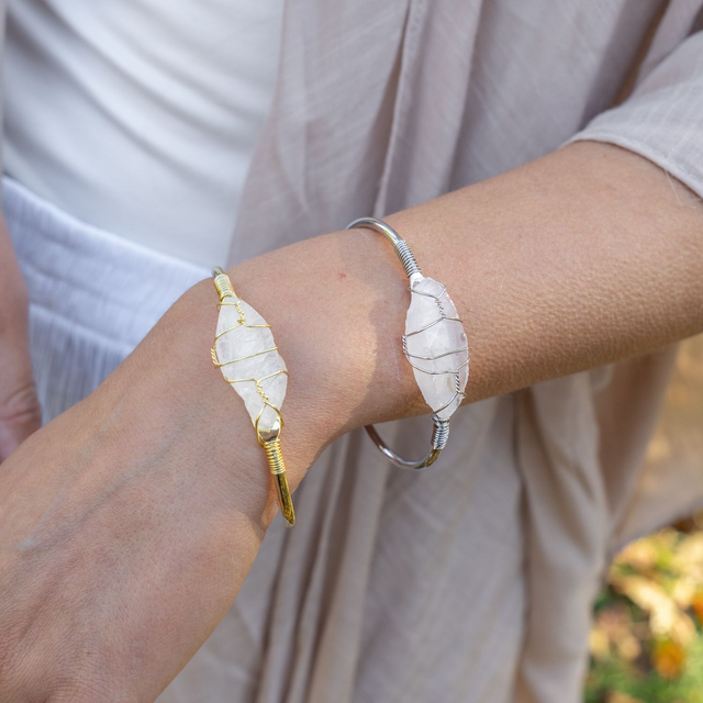 A hegyikristály a fény, a tisztaság és a harmonikus energiák köve, amely segít megtisztítani az elmét és megerősíteni a belső egyensúlyt. Kristálytiszta ragyogása a friss, tiszta hegyi levegőt idézi, és viselőjét támogatja abban, hogy világosan és magabiztosan haladjon saját útján. Ez a nyitott, állítható karperec letisztult formájával a természet átható tisztaságát hordozza magában.